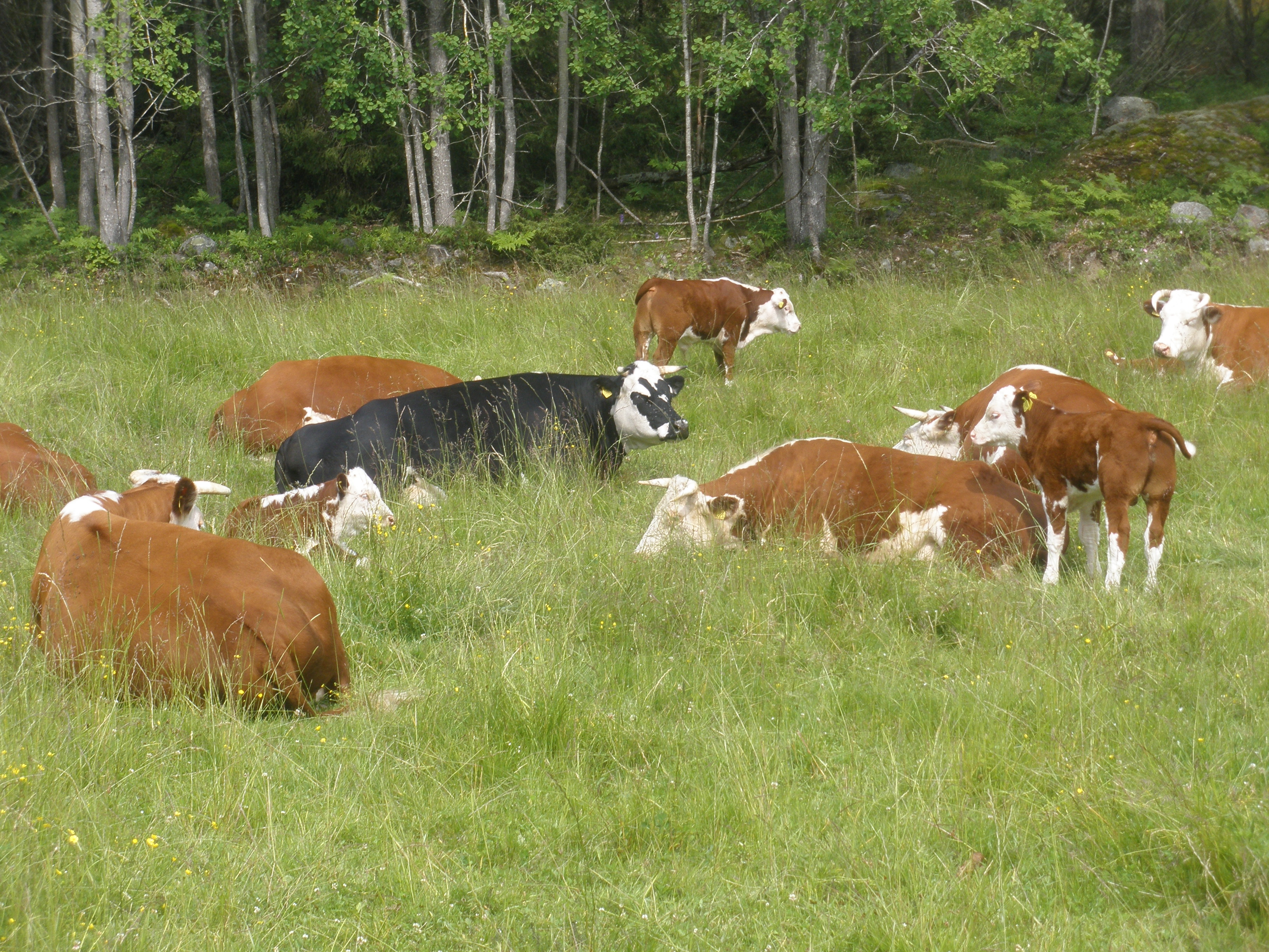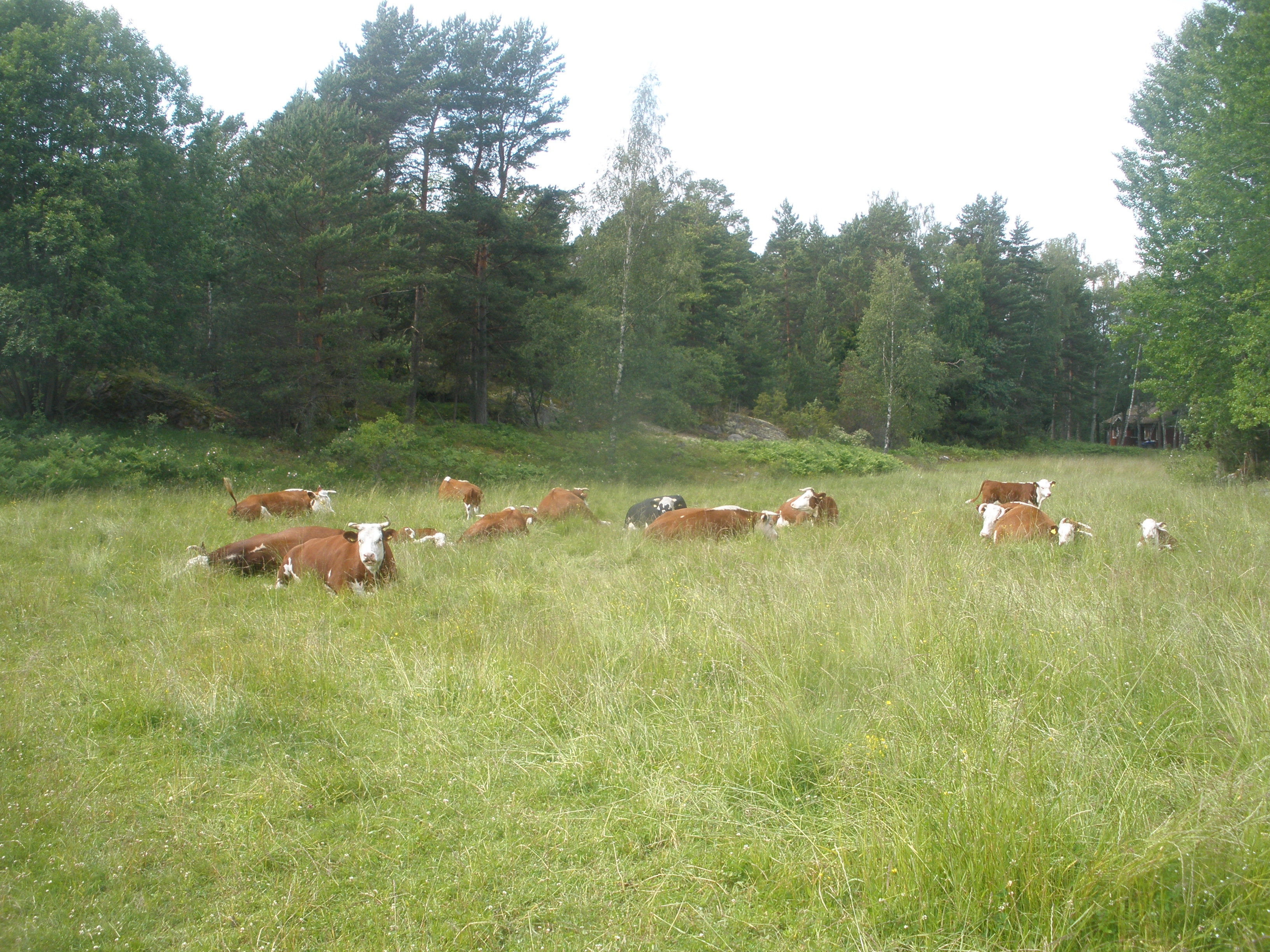 We’ve been to Gällnö several years running now, but have always anchored in the bay called Hemfladen, drawn by the little waterside bar and utterly charming coffee shop, but this year, since Akka is too big to get up to the jetty, and we don’t have a dinghy to row ashore with, we parked by a rock in a different bay on the north side of the island and walked across. The better I get to know Gällnö, the more I think it might be my favourite of all the islands we’ve visited. It’s big enough to offer real walks and small enough that everything on it has a doll’s house feel. This, for instance, is what passes for a herd of cows on Gällnö – daddy, a few mummies and seven babies.