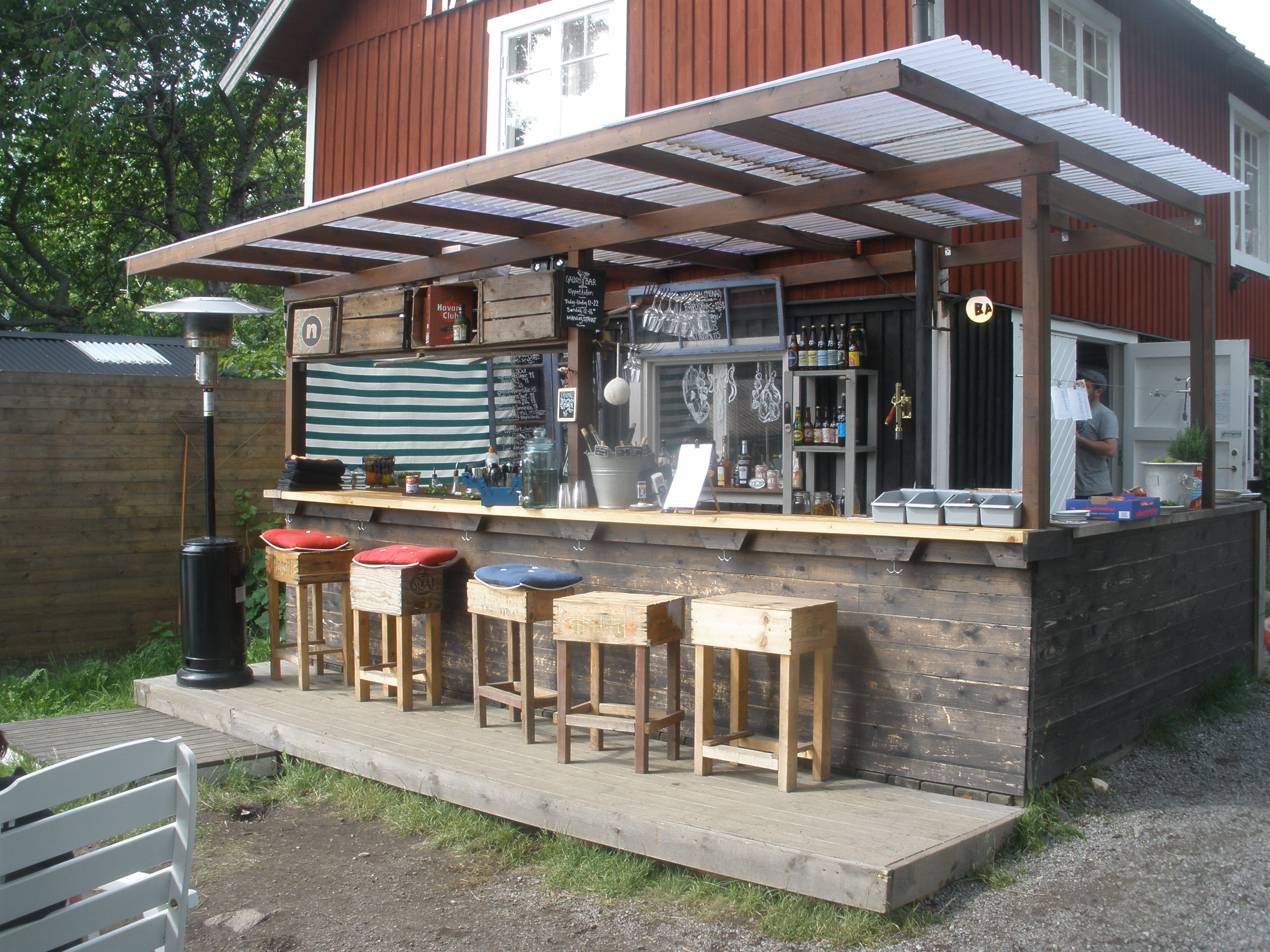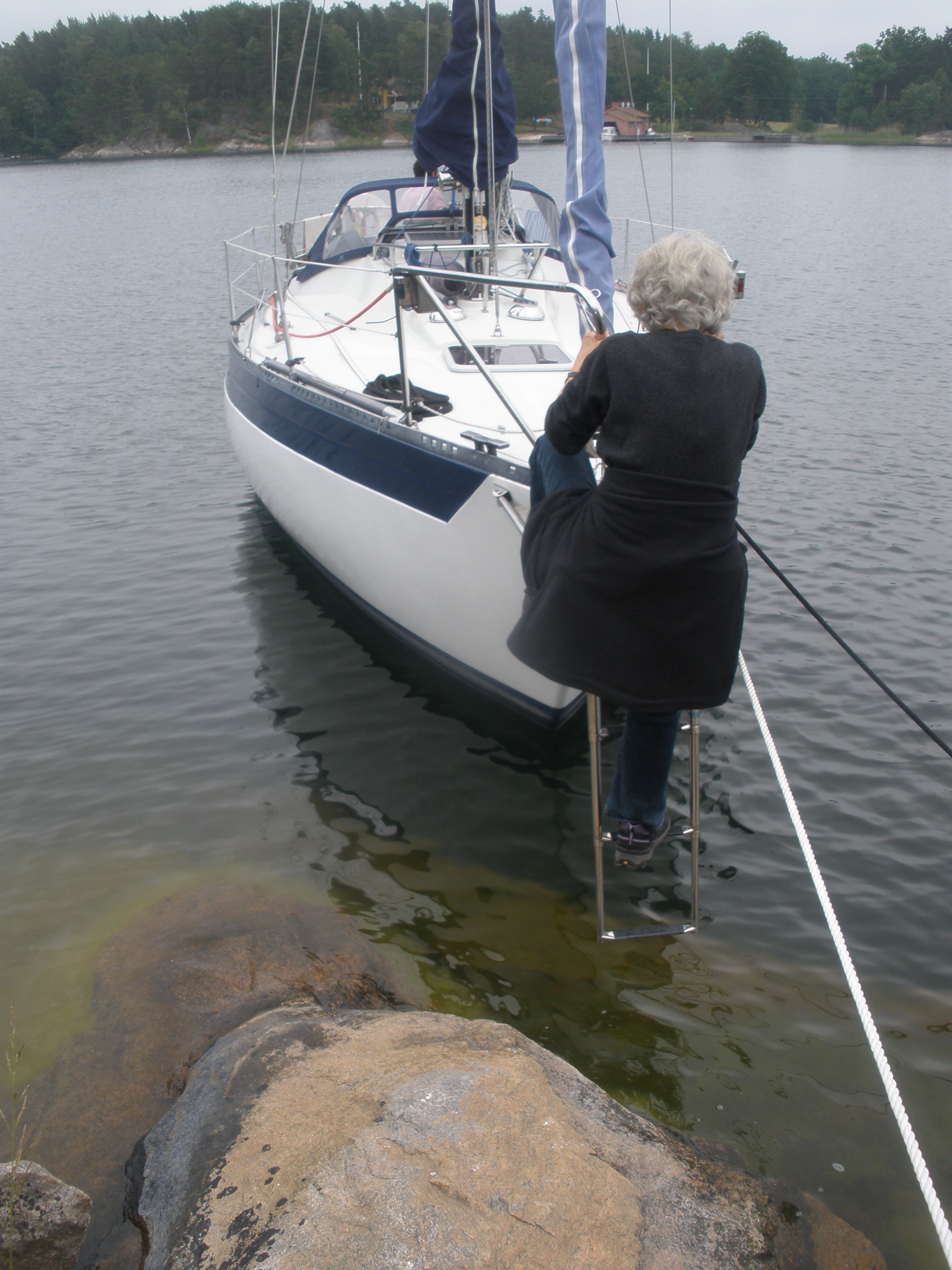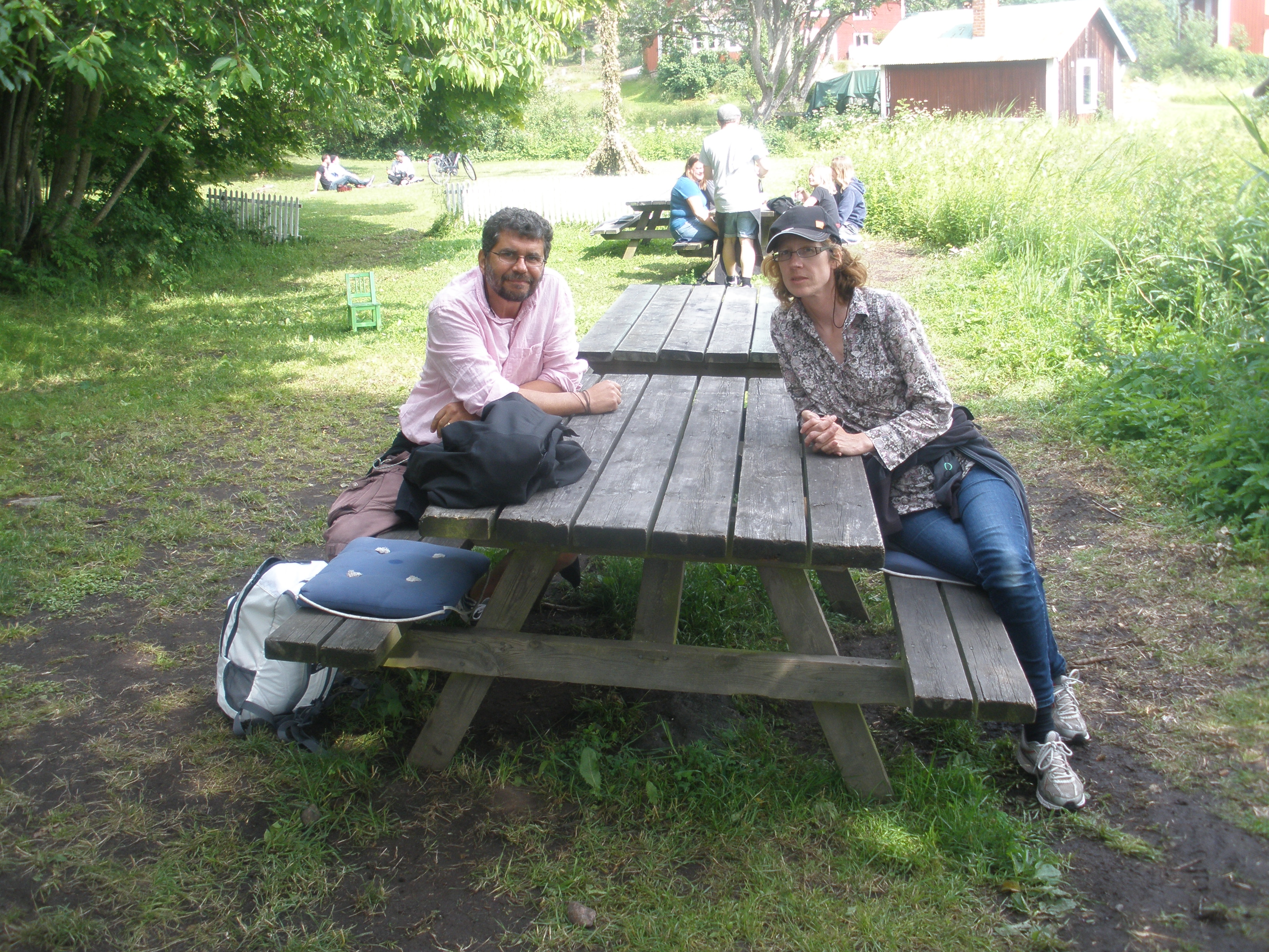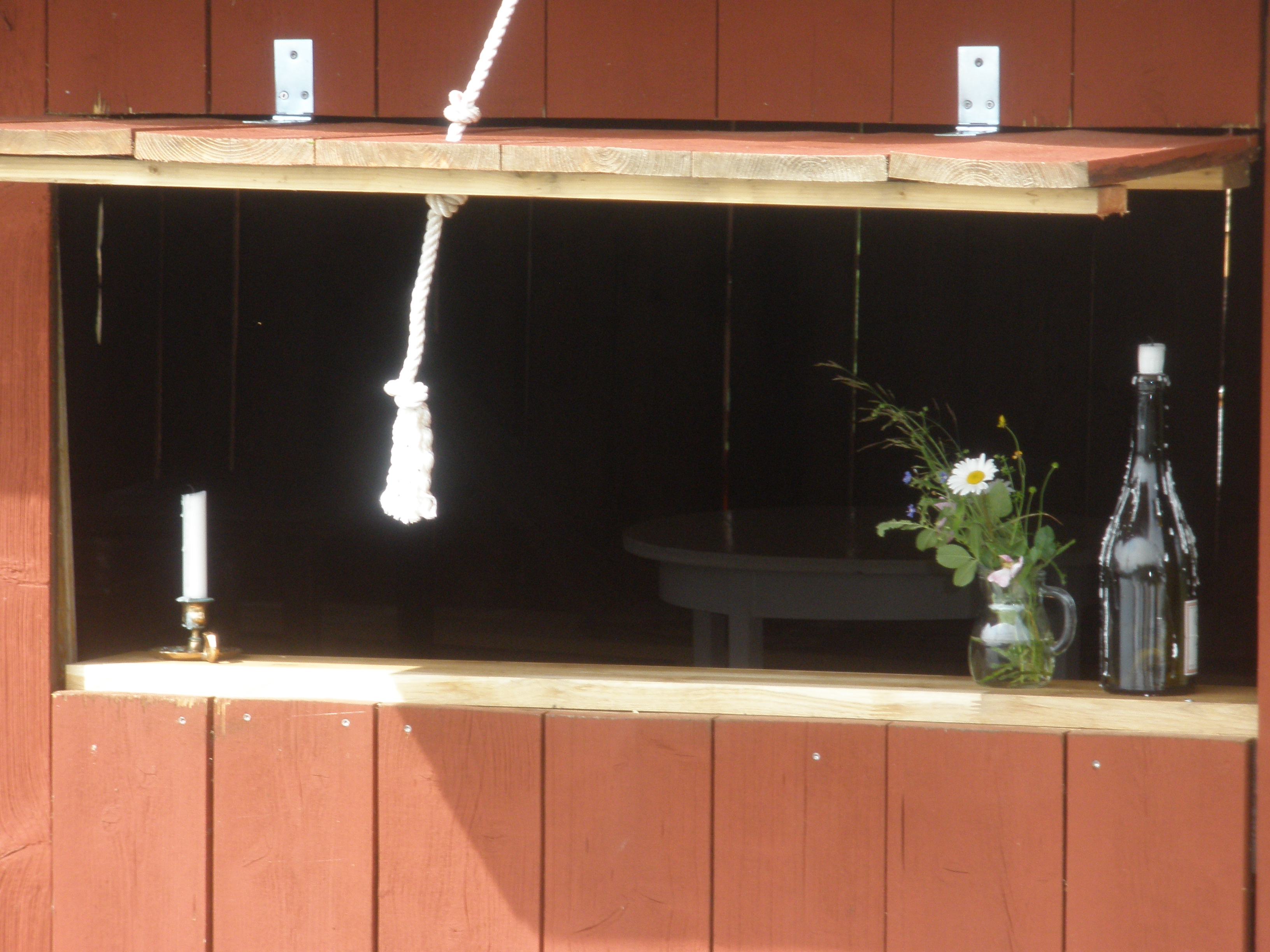 Scenes from the bustling Gällnö metropolis – me and Wolfgang after consuming chocolate cake outside the coffee shop; the bar; an improvised flower bed; window decoration of the “indoor dining area” for those days when it’s too wet to enjoy bar food in the open air (window decorating appears to be an art form in Sweden, everyone does it and some of them are really beautiful).