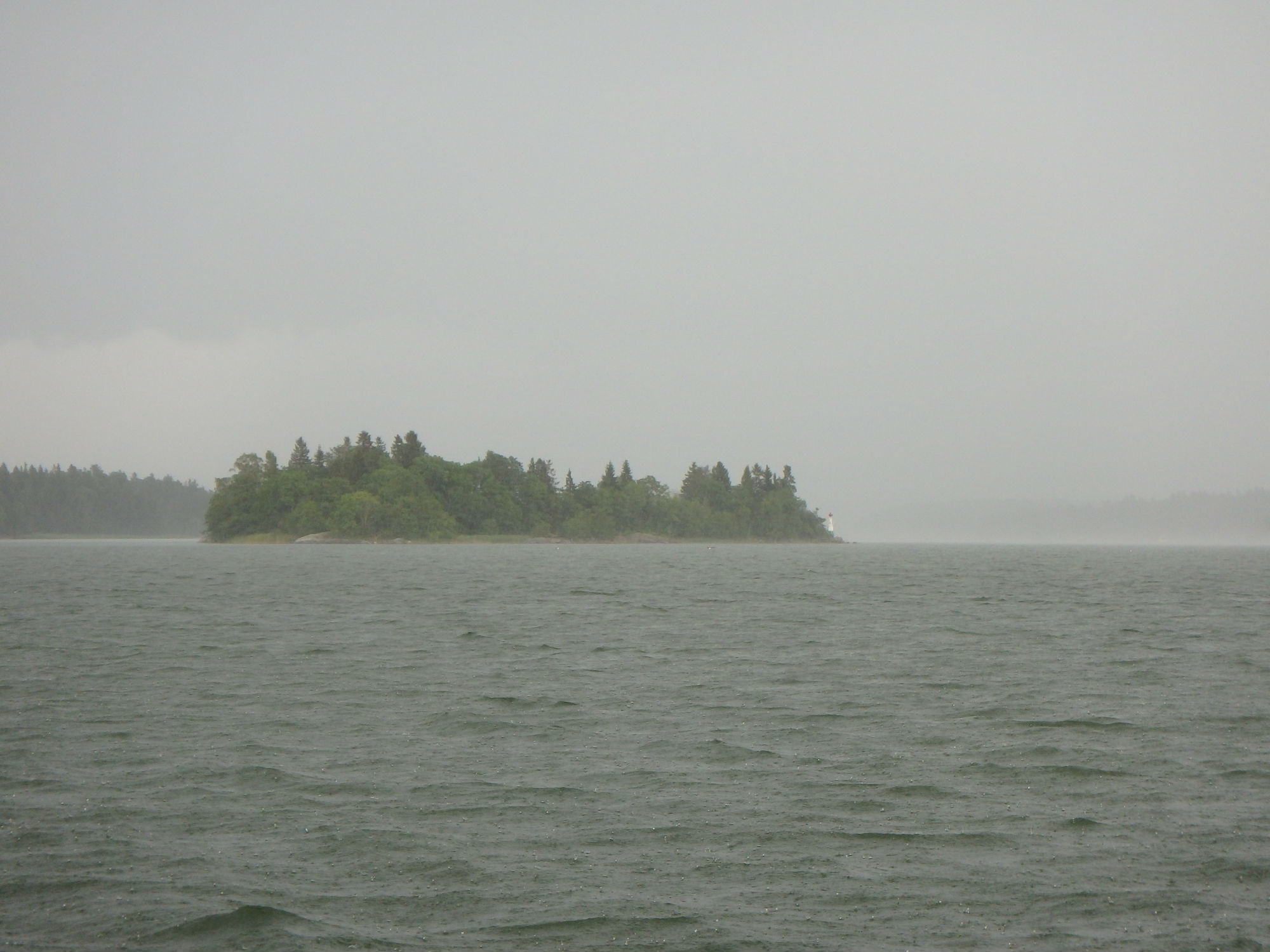 Well, and here we still are the next morning. The thunderstorm passed with lots of rain and some lightning and thunder and the wind shifted to the east but stayed very light. So we decided to stay for the night which meant that our total mileage for the day was 3.8 nm.