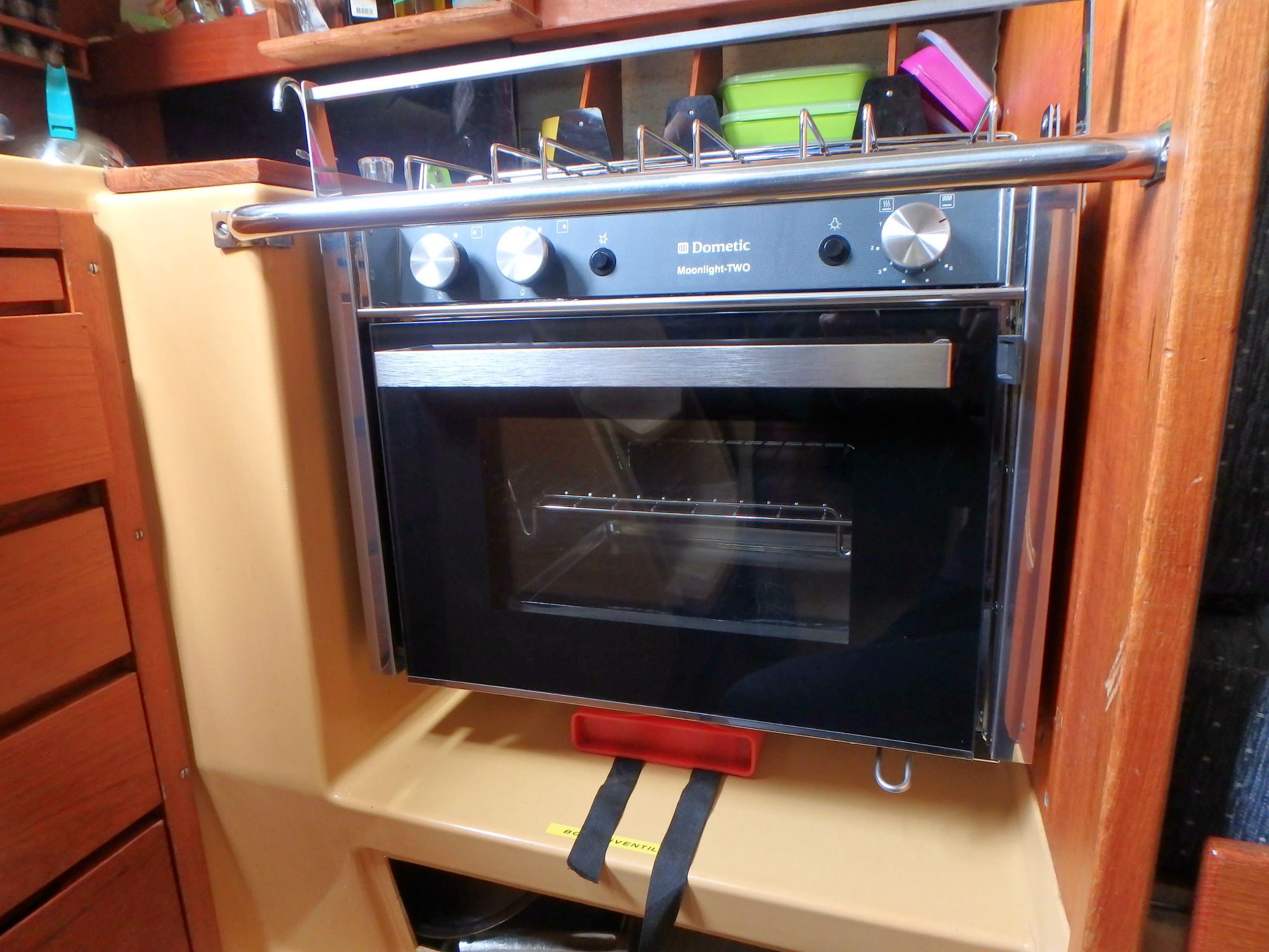 The former industrial wasteland now sports smart new desirable canalside apartment properties and a spiffy new guest jetty, where you can moor for free for 24 hours. Wolfgang spent a happy afternoon installing his shiny new oven (in millennial silver steel rather than 1970s orange and brown) and then we spent and awful 20 minutes lugging the old oven back to the shop for them to dispose of. Wolfgang rigged up a makeshift carrying affair with some red webbing and staggered along like a sherpa ascending Everest, while I frantically held up the right side that kept threatening to slip out of its cat’s cradle. He also tried to persuade the shop to take his old fridge but without success, so Akka is still carting the corpse of the former fridge on all her journeys. Gaining access to municipal dumps is one of the problems one rarely contemplates in advance when planning a sailing holiday.