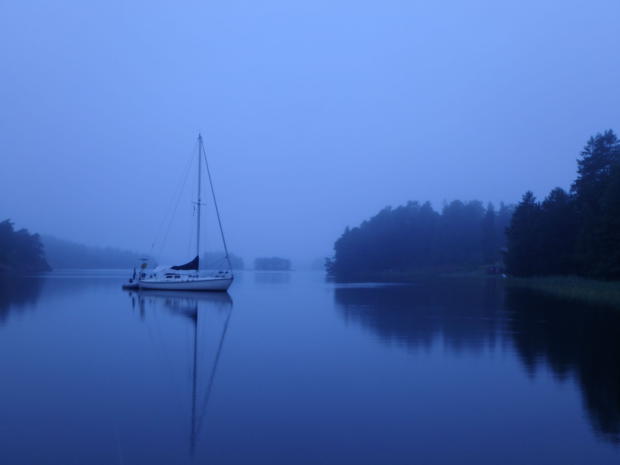 I awoke to a wonderful view of a solitary boat riding to anchor in our misty little safe bay – Gällnö does it again!