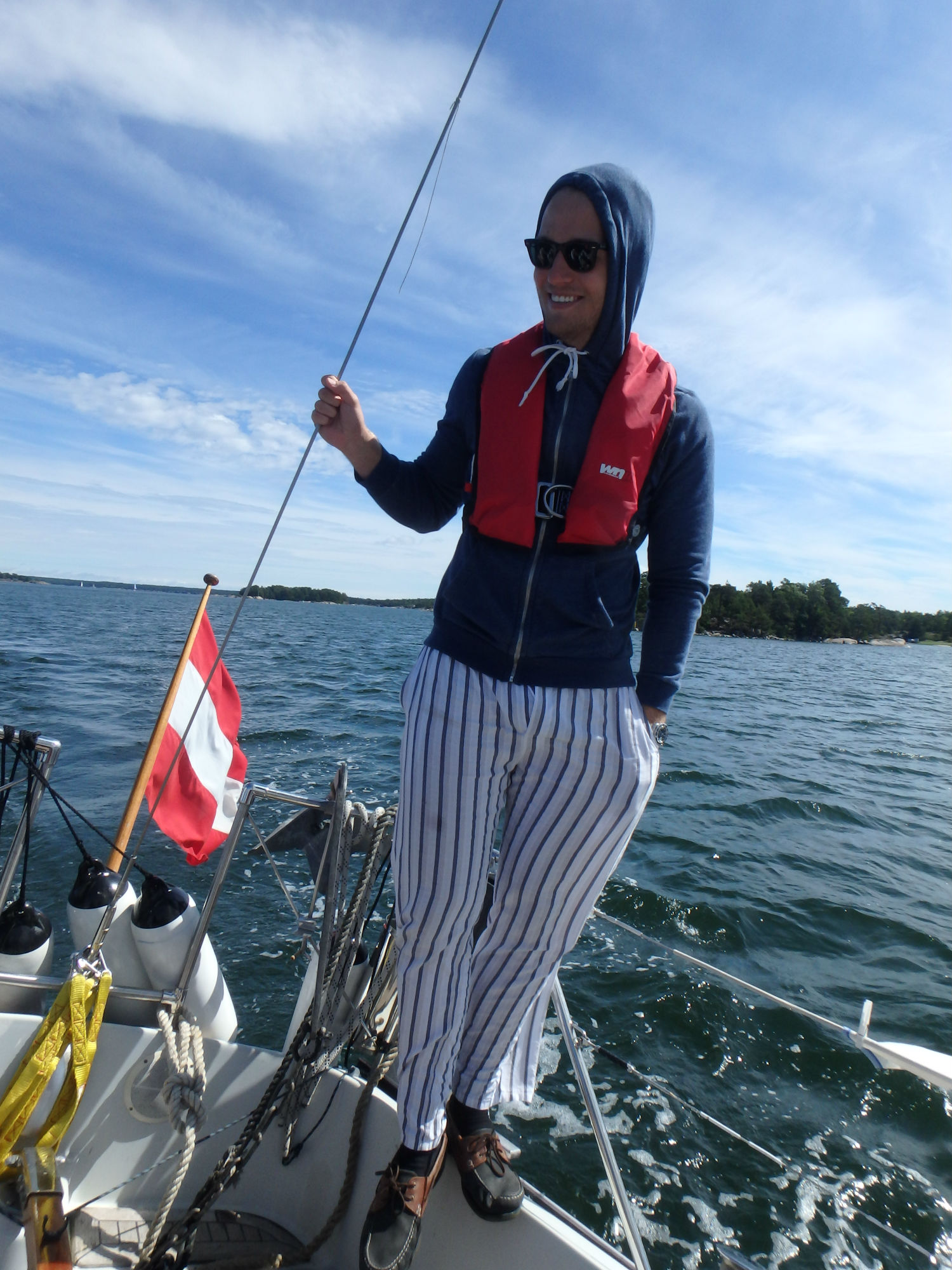 Flo felt pretty relaxed on-board Akka all week but he topped it today by sailing all day in his pajamas.  The guys on the 57 ft brand-new Hanse yacht from Australia made big-eyes when we arrived next to them and Flo was as cool-as -it- gets at the bow handling the mooring lines in his sunshades and pajamas.