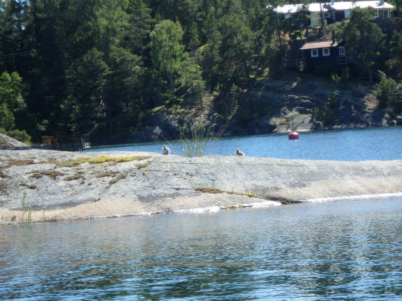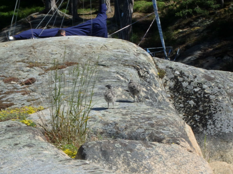It only takes two rocks and you have hours of fun looking at them. Here we are at Själbotna which sports 2 rocks sticking out in front of a mooring bay. Seagull chicks included.