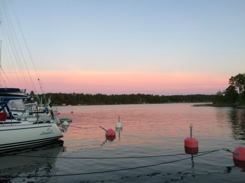 Furusund provided us with shelter from the wind, electricity for the notebooks, showers for ourselves and views onto passing ferries and a petrol station. Amazing how a petrol station in the sunshine can look quite nice.