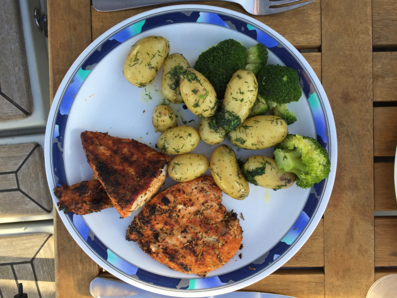 After our kayaking trip we decided to go to Granhamn, just around the corner from Fejan. There was a heavy wind going from south-east and even with the engine going at full speed we only made 2-3 knots. But the little sheltered natural harbour at Granhamn was only 20 minutes away and a barbecue was on the menu for tonight.