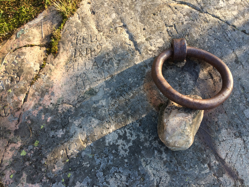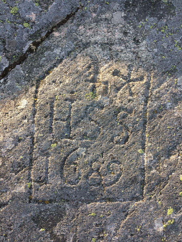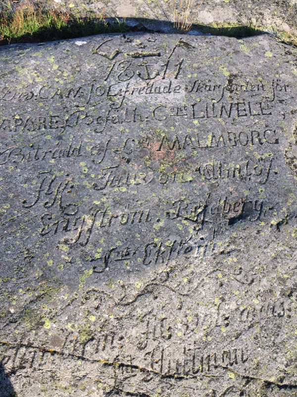 The sailors spent the time waiting chiseling their names and their boat names into the granit. You can see some engravings that date back to the 17th century. We also left our sign, but decided it was much easier to do it in the sand rather than the granit.