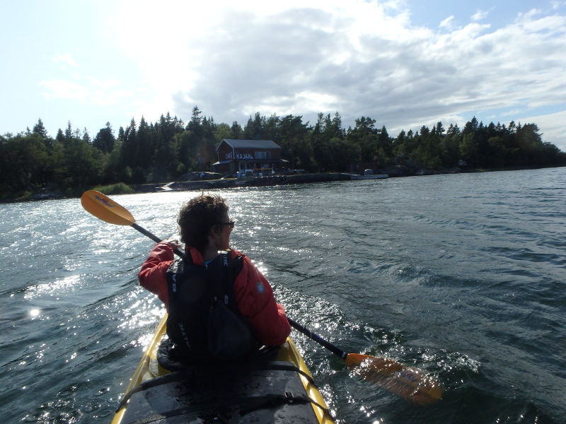 As there was quite a strong wind it was actually very easy to skim along though the Baltic – as long as you go with the wind. We soon had to learn the hard lesson, that going against the wind in a kayak is very hard work indeed. We had to cross a stretch of water that was pretty open to the wind. It was only about 500 – 700 meteres and it took us a good while to go very sloooowly. Victoria got a good soaking sitting in the front but it was good fun anyway.