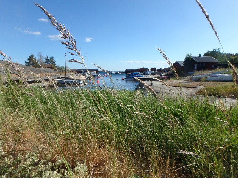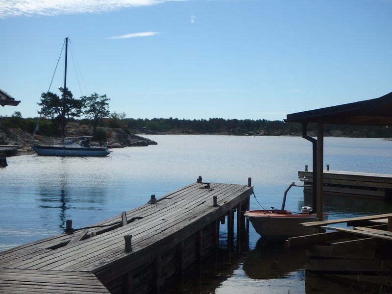 The Baltic has currently very little water. I know this sounds stupid but the prolonged high-pressure means that the sea-level is a a good 30 cm below normal. So when we got to Kyrkviken on Möja we had to snuggle our way in to find the right spot for Akka’s keel. There is not more than a few centimeters of water underneath her now.