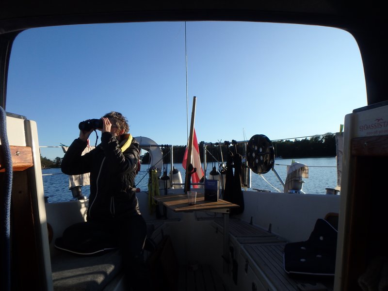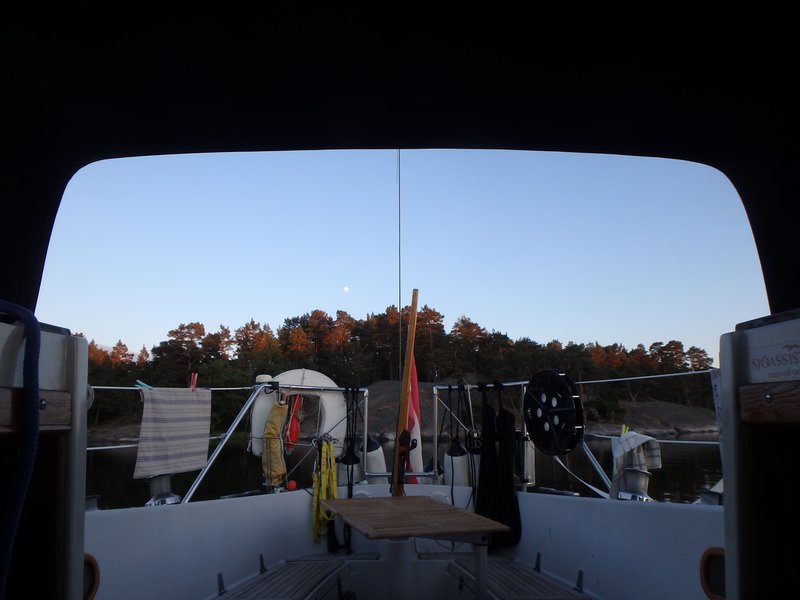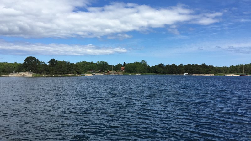It is a tricky entrance but it is one of the most perfect natural little harbours in the archipelago. Protected from all sides, 5-6 meteres of depth, a good selection of rocks to moor a beatiful view onto some little red houses – ah yes, and lots of sunshine too!