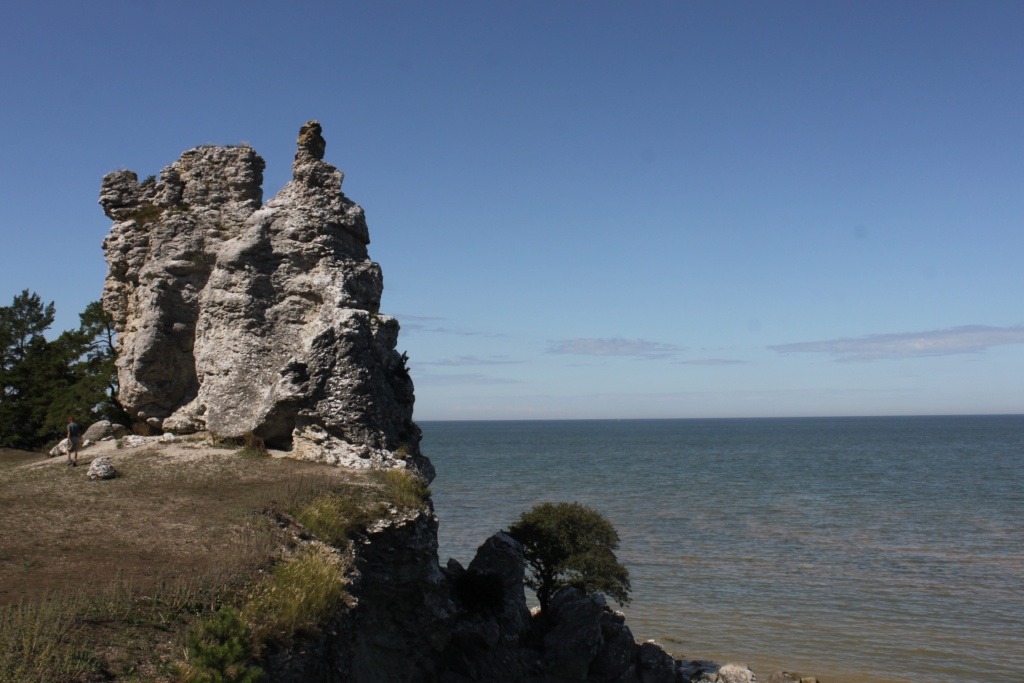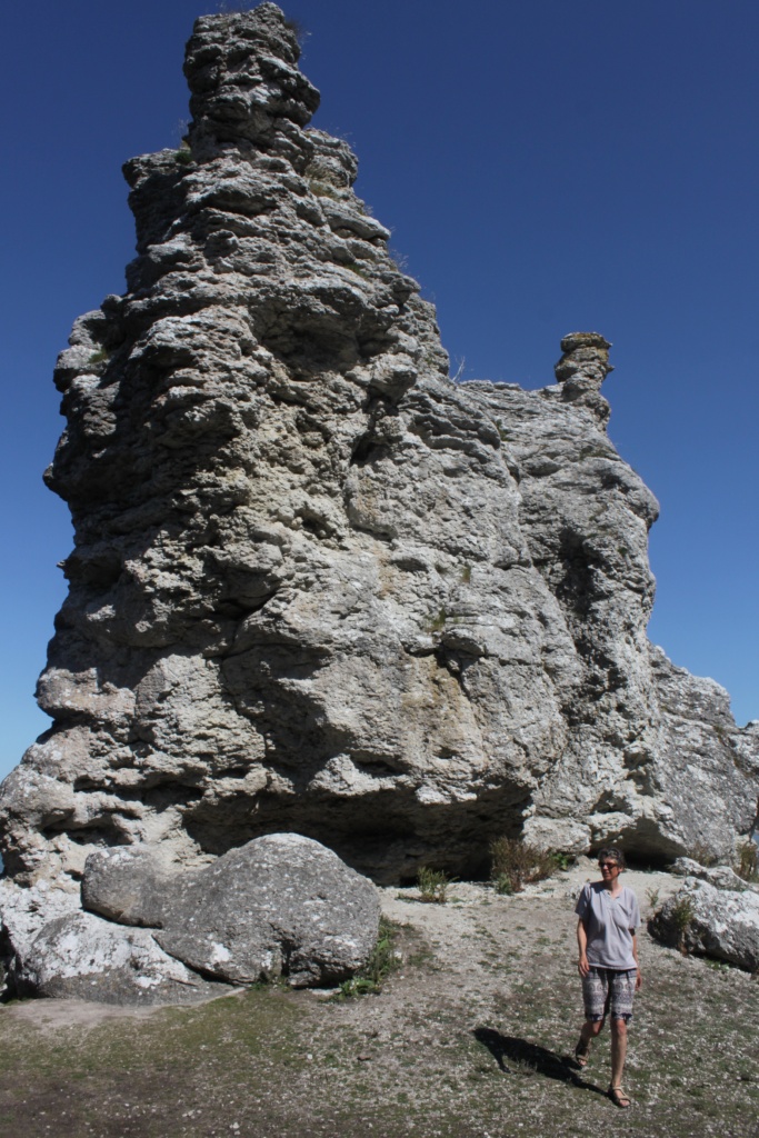 We also wanted to get that dreamy look and hired two cycles. And let me tell you, Gotland is not so flat as one would think. But nice, beautiful sea-views and lovely countryside. We went to a place called Lickershamn, that sports a rock-formation called “Raukas” that can be found on Gotland. These sea-stacks are vertical rock formations, formed by wave erosion. Impressive!