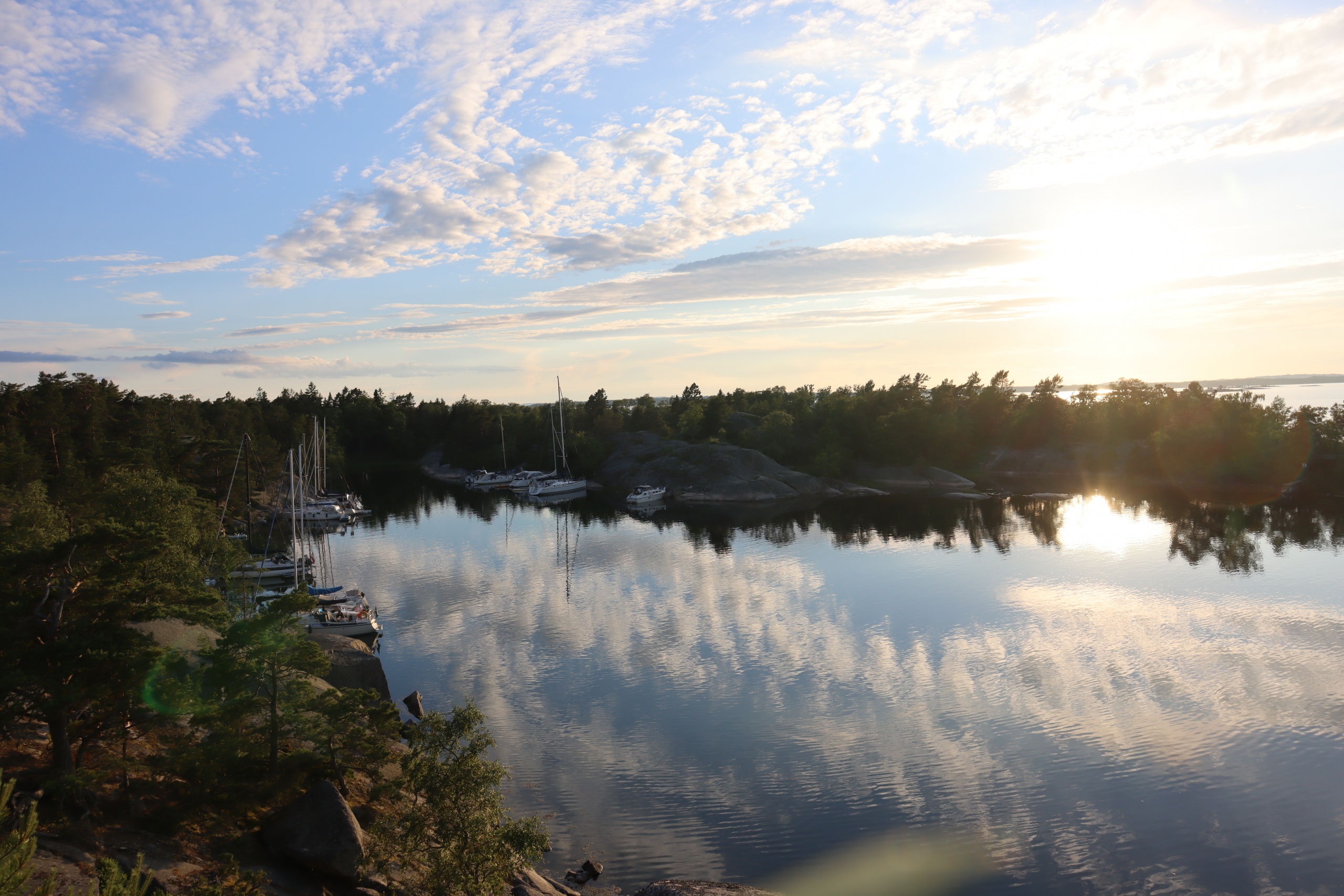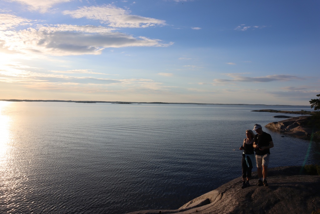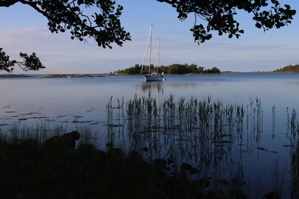 Sailing the next day started well but ended quickly, as the wind died down. But one of the attractions of the Skargarden is the multitude of parking options. So, we headed for Biskopson and found a beautiful bay, ideal for lunch, an afternoon snooze, some swimming, an evening stroll, cooking and marveling at the number of mosquitos per square inch skin.