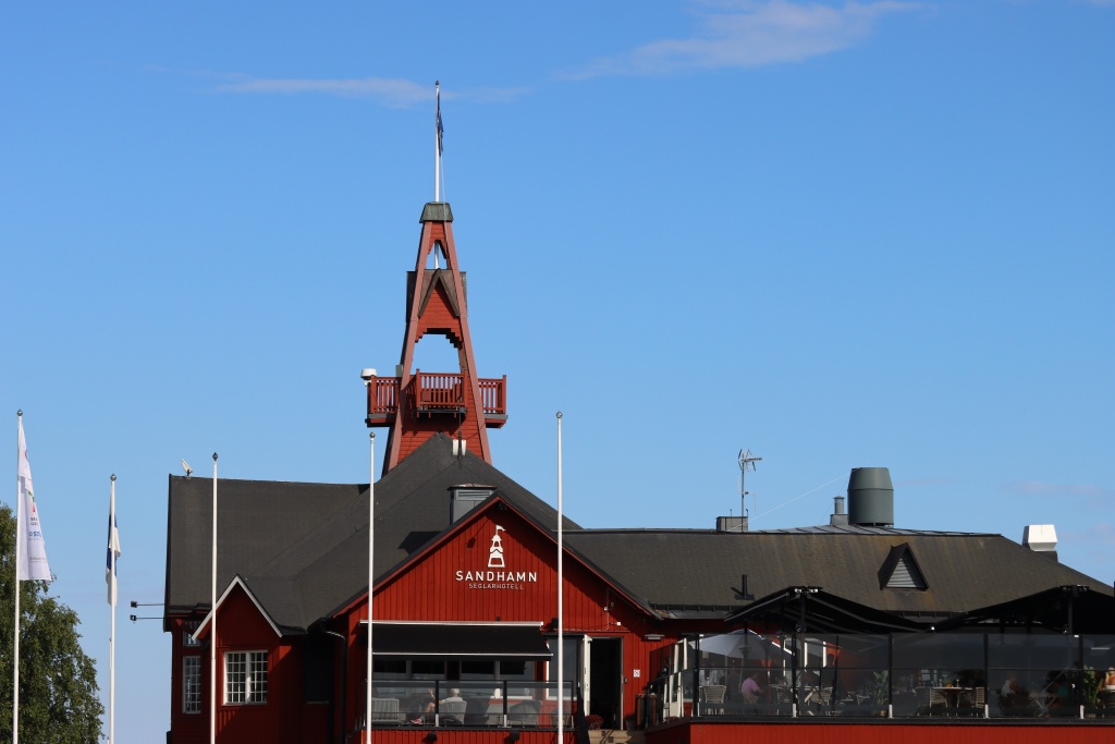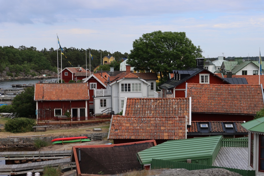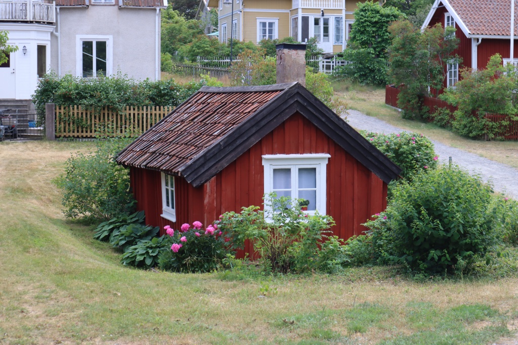 We are so lucky with the weather. Around 25 degrees every day and with occasional clouds to pass through to make it really picturesque. Yesterday we were particularly lucky, as the forecast predicted rain all afternoon and the thunder in the back seemed to confirm that. We made it into Sandhamn in black clouds but then, the weather cleared up for a great stroll and evening on Akka.