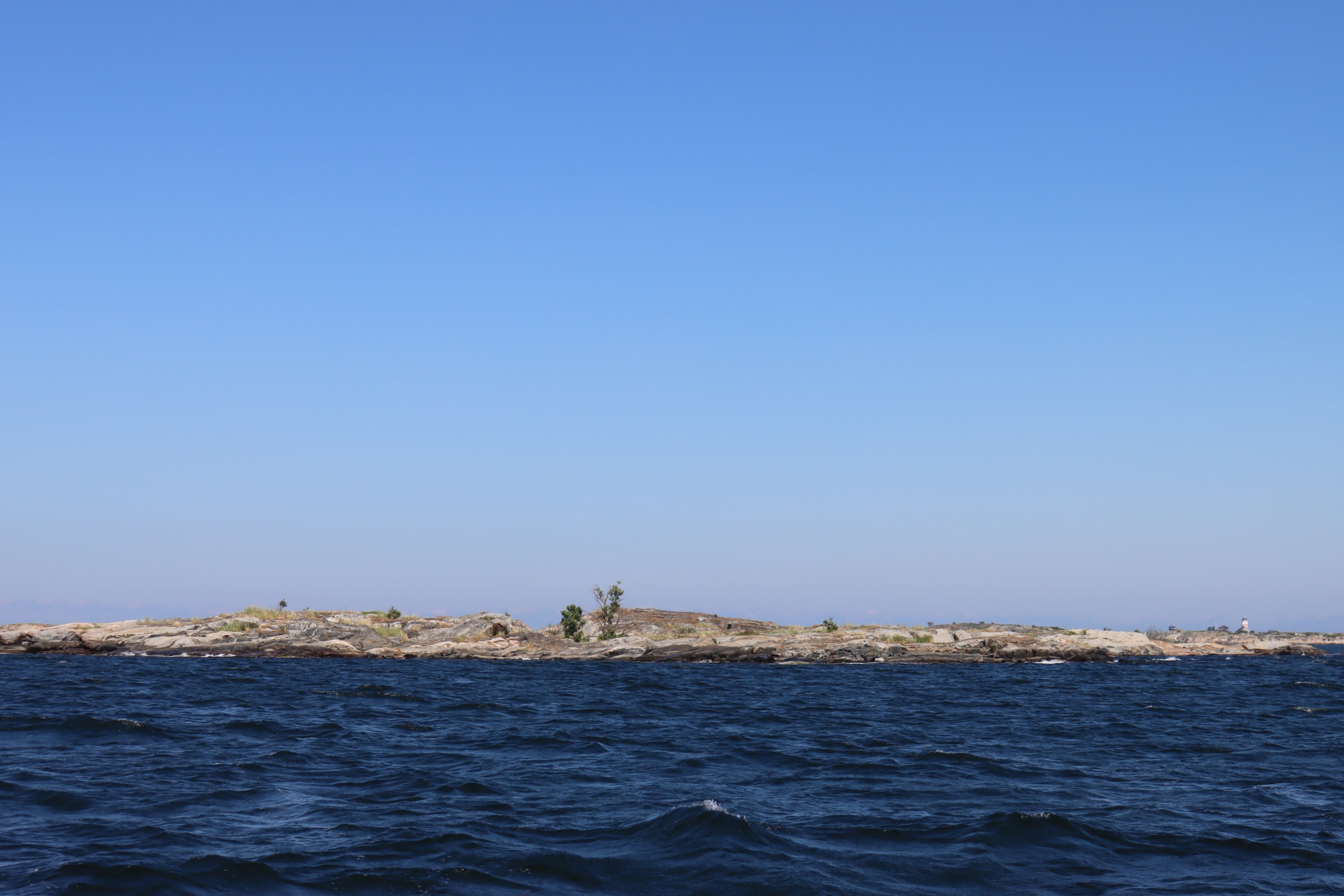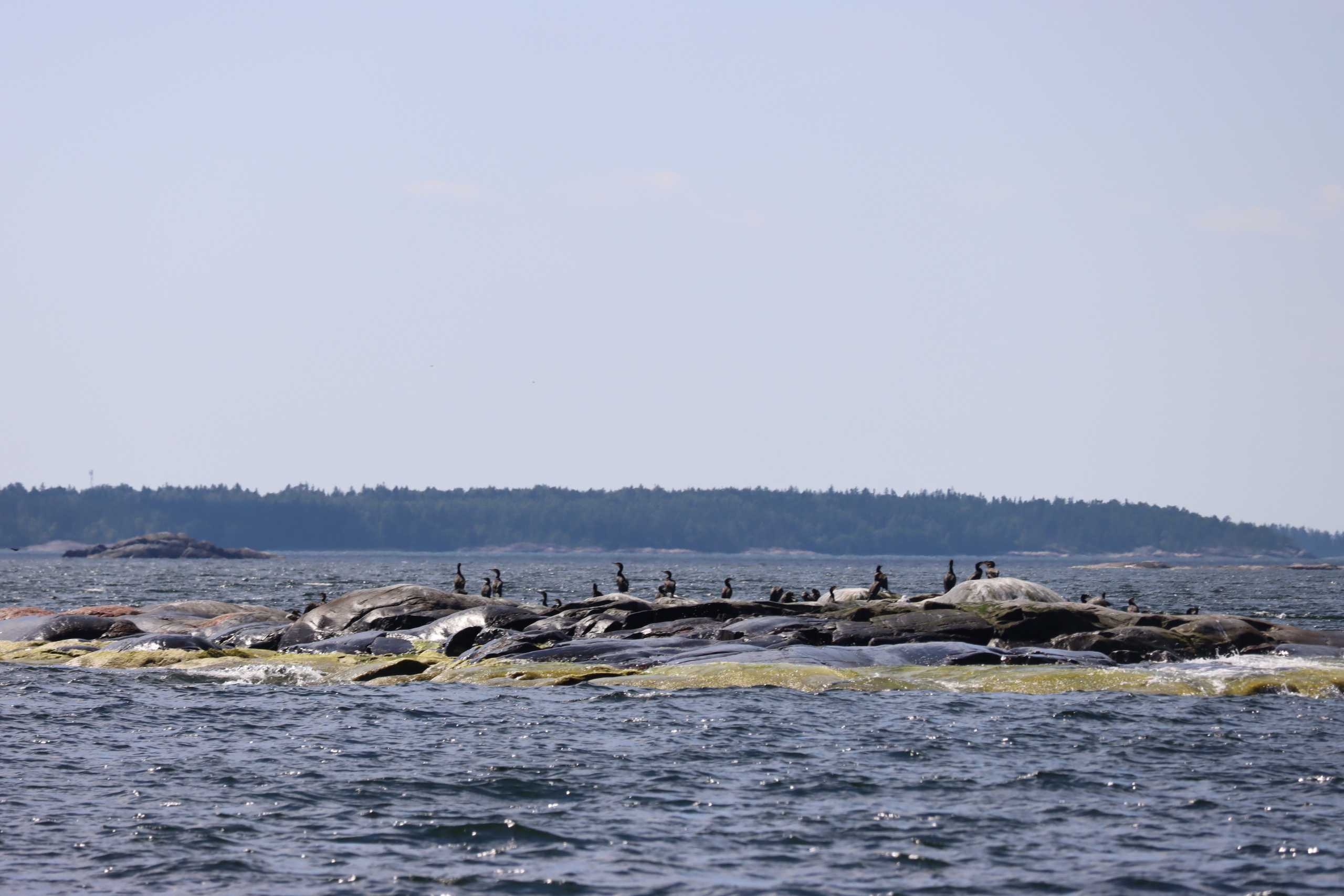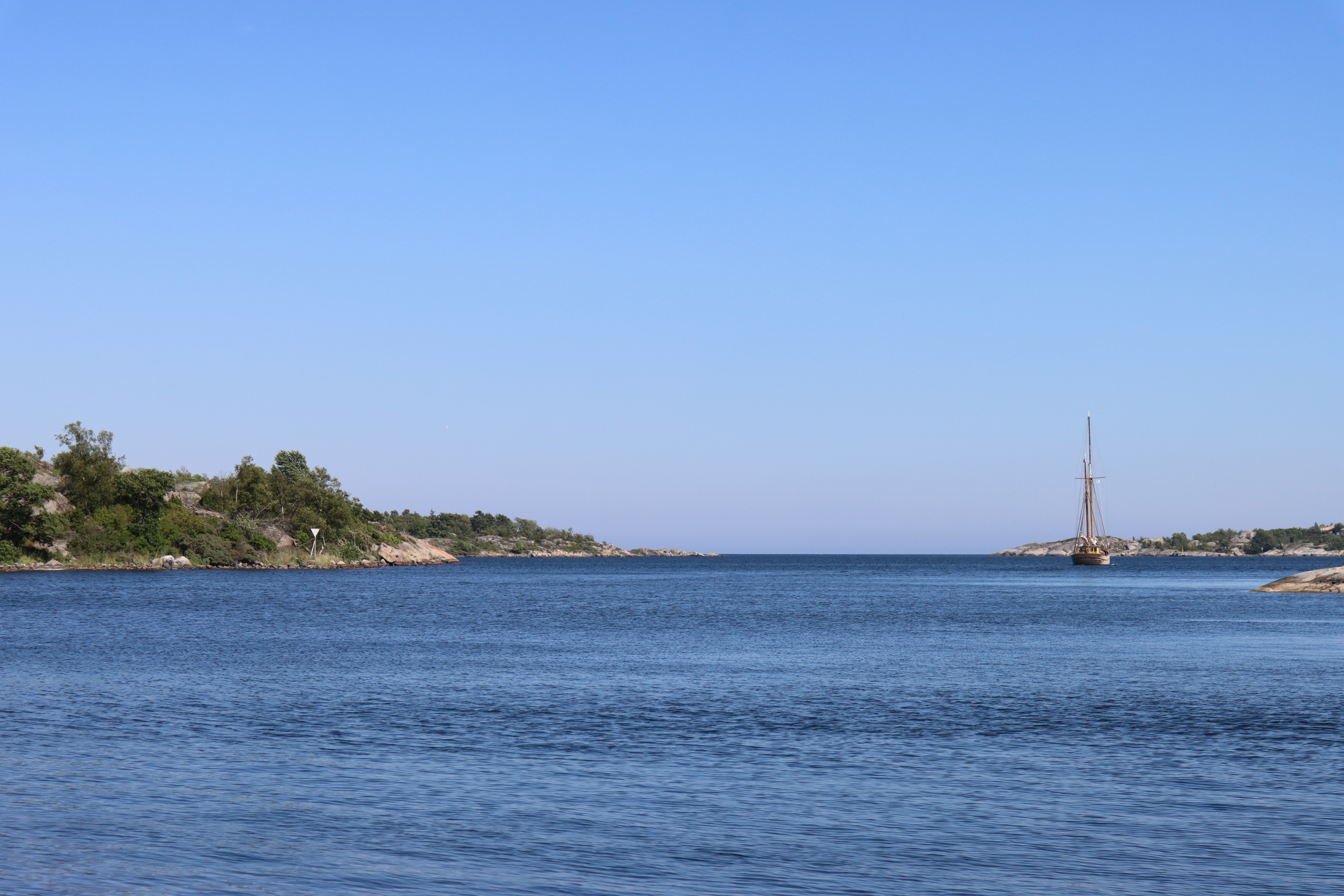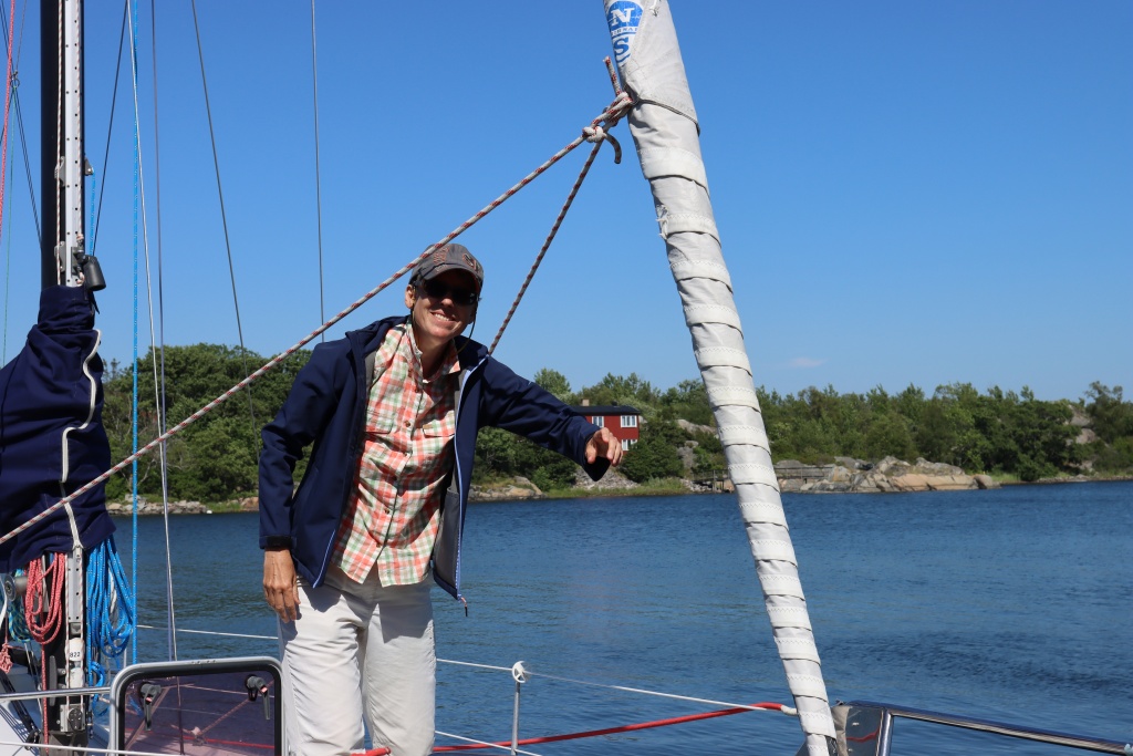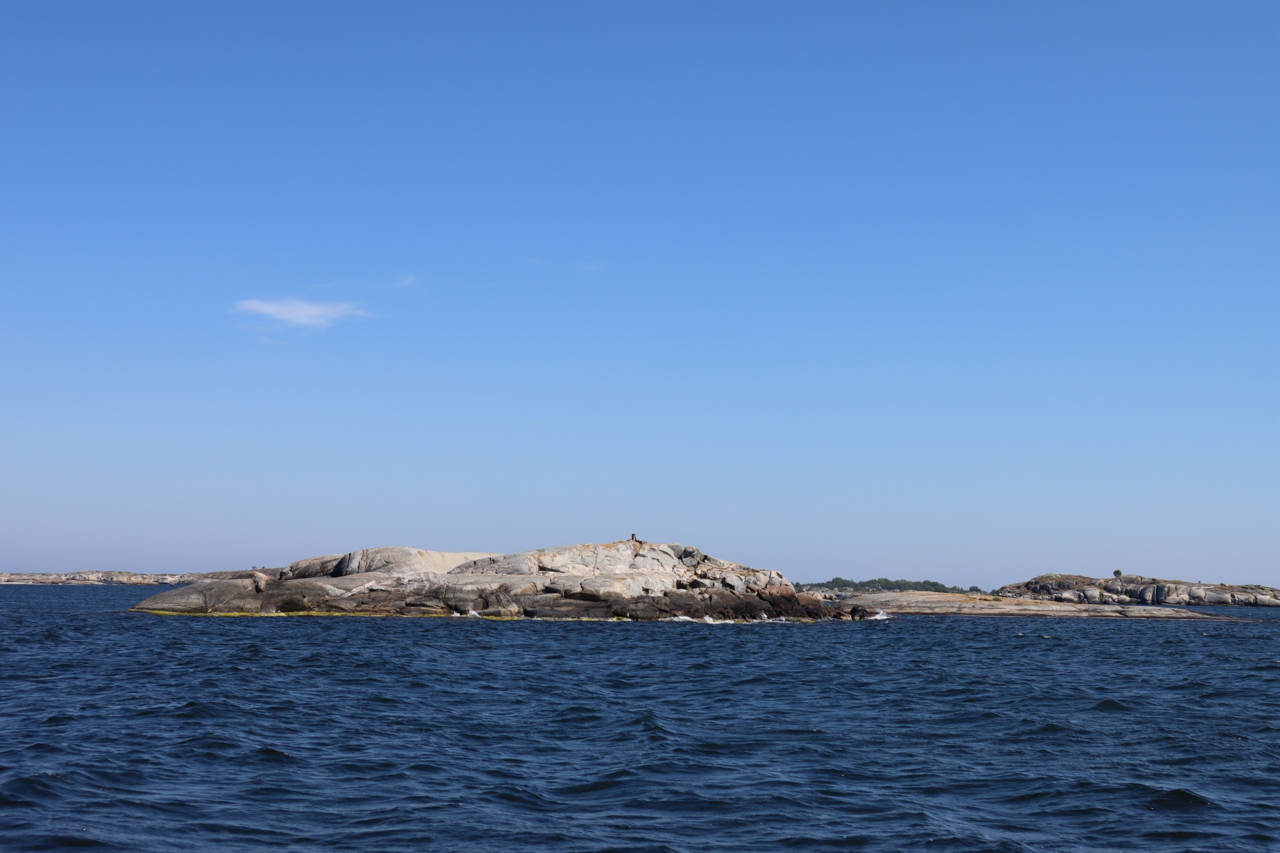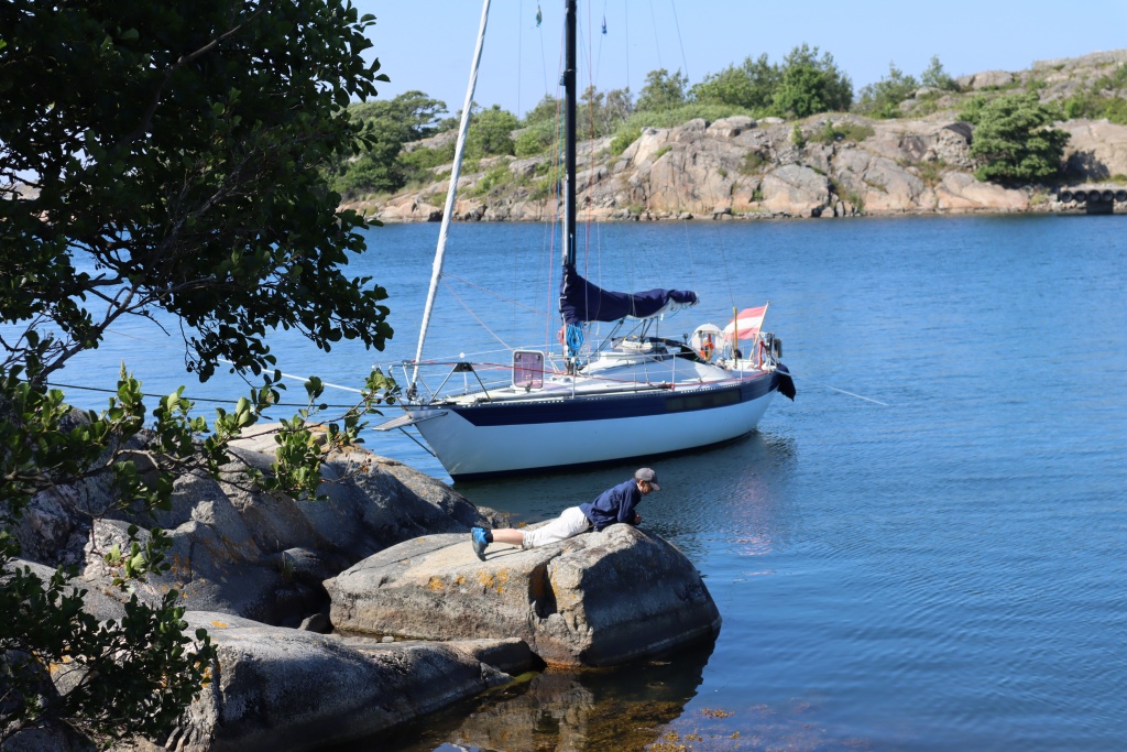 Lovely! Especially with the amount of blue (skies and sea) about. Unfortunately, the island is overgrown to such a degree that a walk is simply impossible. We are currently waiting for the wind to get down so that we can take Nils out for a peak around.