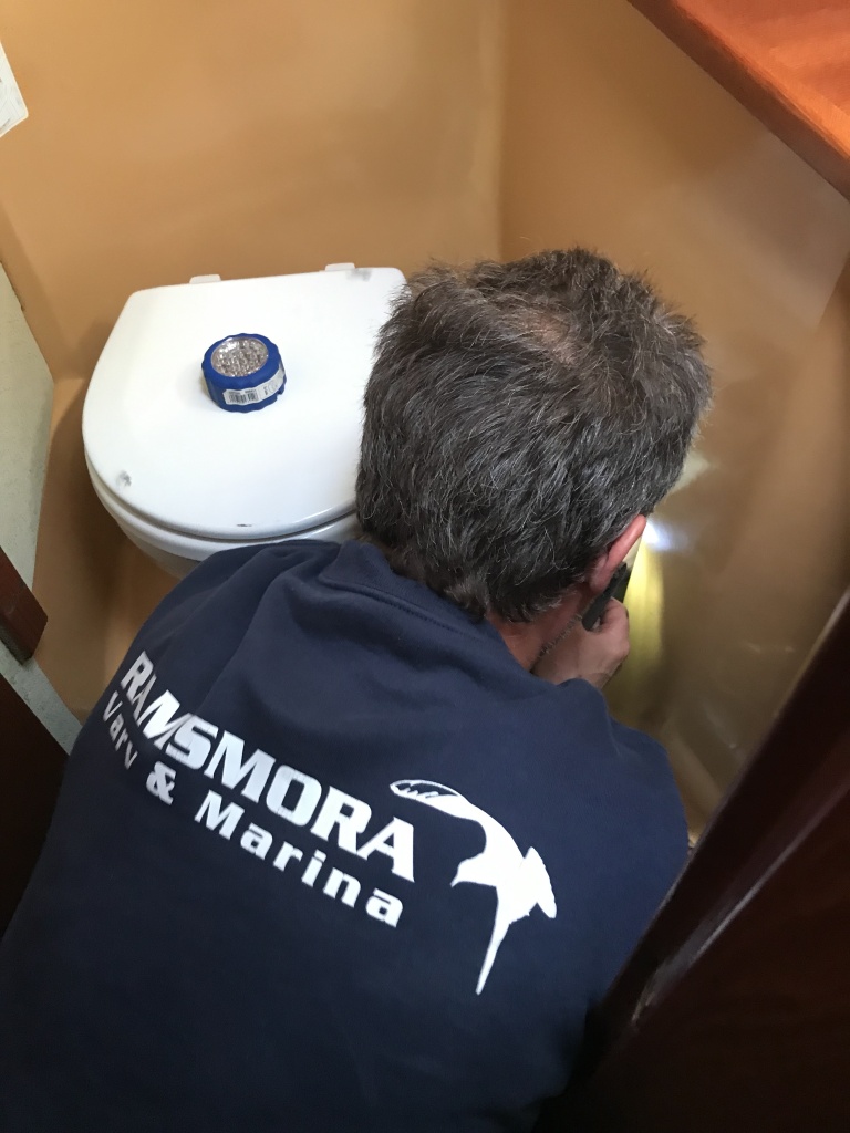 Last year we had a problem with the seacock that lets the waste from the septic tank out into the sea. After lots of huffing and puffing, I got it to work and all was well. This year it was stuck again and in order to avoid the huffing and puffing, I thought I’d take the hose off and add some WD40 to get the valve loose again. Great idea, but I broke off the nipple for the hose!