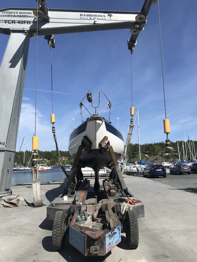 A finally we make a splash. It has taken a long time to get Akka into the water this year. With the train journey, it feels even longer. But yesterday was the day and all went well. Even the new sea cock is OK 🙂