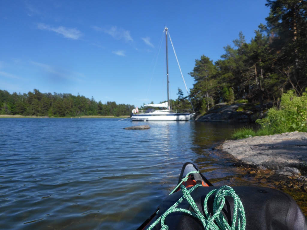 I decided to kayak to Hemfladen and go for a beer there. However, as I was paddling along, I realized that I really need a shower and that it would be very unsocial to turn up very smelly. So back I paddle.