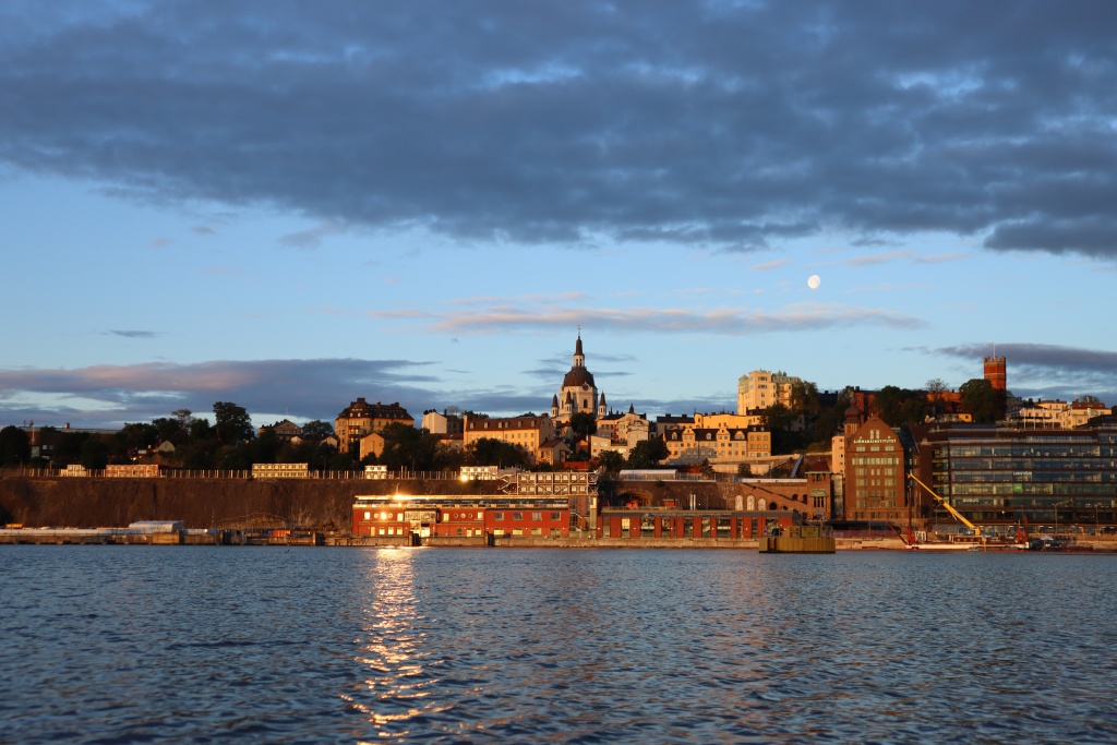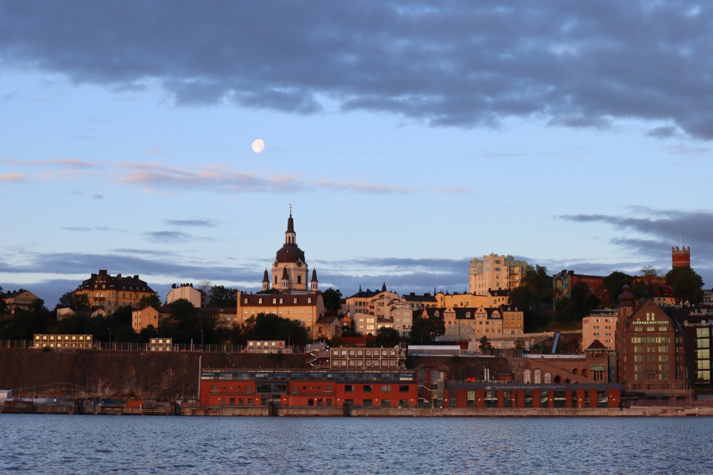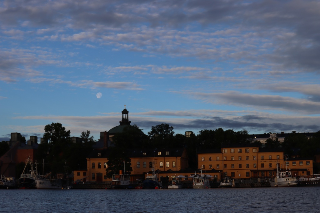 The night walk and the full moon a couple of days ago gave me an appetite for more. Unfortunately, it was very overcast and rainy last night, but tonight it looked promising. The moon come up! And as it is a Buck Moon at the moment (a full moon during the summer where its path is closest to the earth and appears particularly large), I expected the coffee table picture opportunities. Alas, the moon was mostly above the building cranes at Slussen. Nonetheless, a beautiful 2 hours in the kayak.