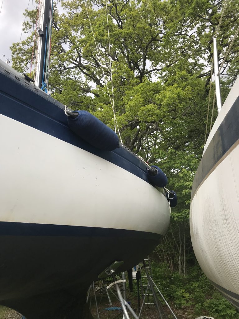 We did some small damage to the rudder last year. The anchor line must have run across the edge and we scraped off a bit. Nothing a little fibre glass won’t fix.
