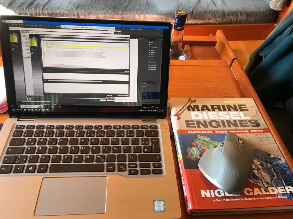 I am in Vaxholm at the moment and am enjoying the luxuries of power & shower to do some work-work. Note my mouse-pad 🙂