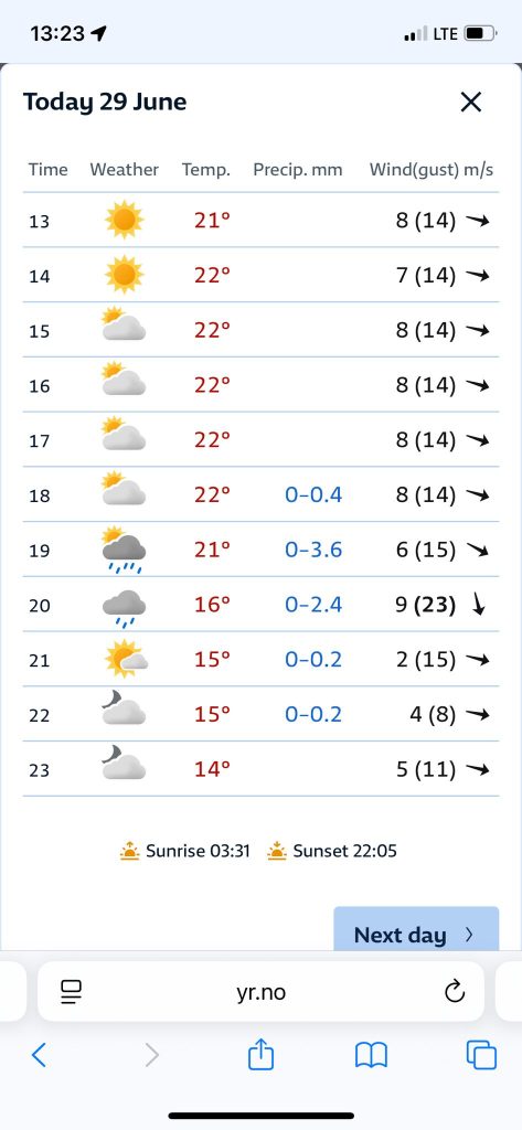 I was on my way from Ingmarsö to Stockholm by ferry boat to pick up my brother in law, when I saw the forecast. Gusts of 23 m/s! That is 44 knots of wind!